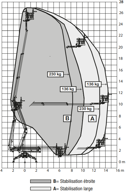 Double bras articulé (pantographe) et stabilisateurs indépendants