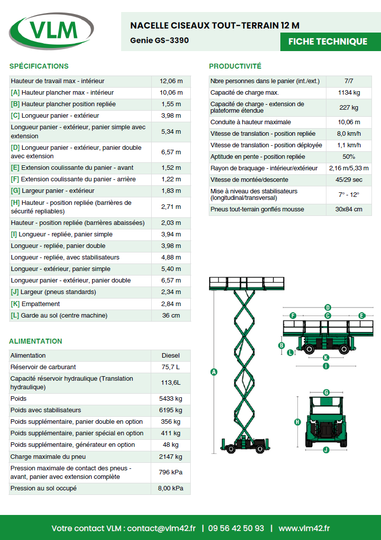Conçue pour les environnements exigeants, la GS-3390 vous permet de travailler jusqu’à 12 mètres de hauteur en toute sécurité. Sa plateforme spacieuse, sa capacité de charge élevée et ses roues tout-terrain vous accompagneront pour tous vos chantiers extérieurs, travaux industriels ou interventions en zone difficile.