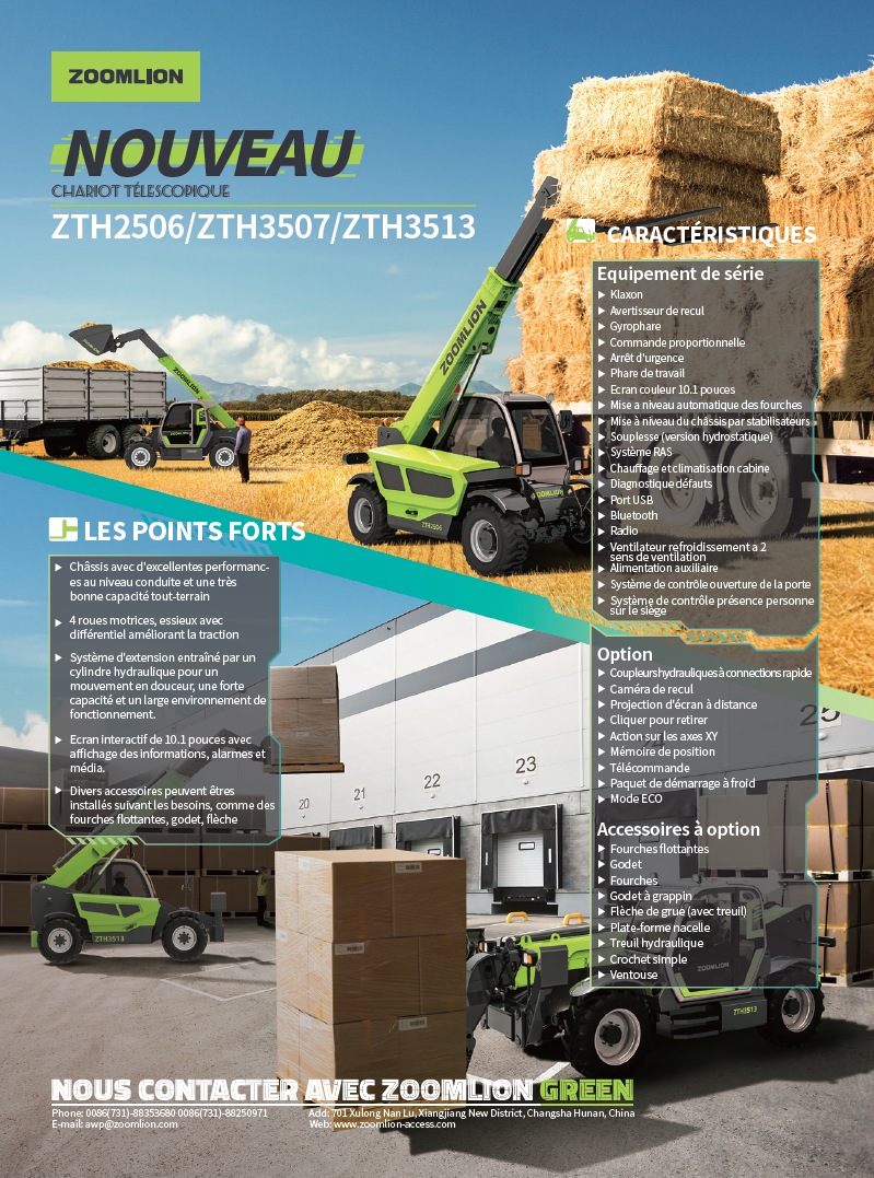 Facile à manœuvrer, même dans les endroits les plus étroits, le chariot télescopique Zoomlion ZTH2506 est le compagnon idéal pour vos chantiers de construction ou de rénovation. Il lève jusqu’à 2,5 tonnes à près de 6 mètres de hauteur. C'est un vrai concentré de puissance et de polyvalence dans un format passe-partout.