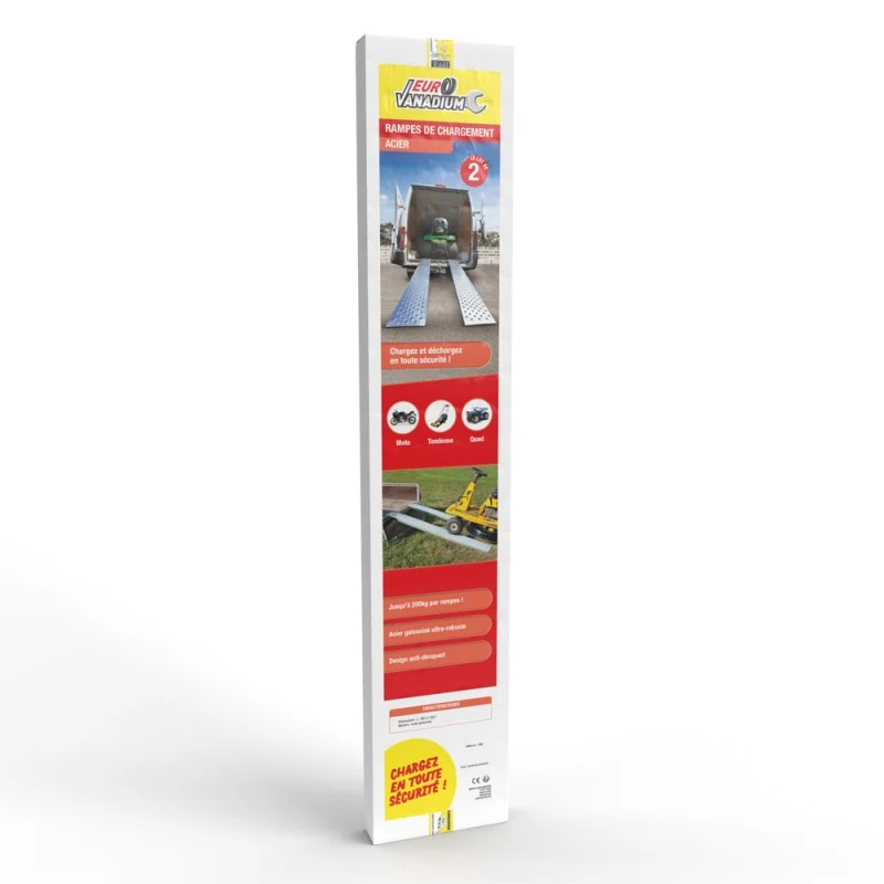 Ce lot de 2 rampes en acier de 1,60 m est parfait pour faciliter le chargement sécurisé sur camions, camionnettes ou remorques. Leur traitement anti-corrosion garantit une durabilité maximale, même en conditions extérieures exigeantes.