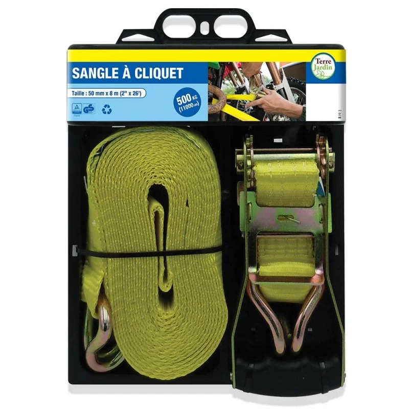Fabriquée avec des matériaux robustes et durables, cette sangle est également idéale pour les déménagements, offrant à la fois performance et praticité. Facile à manipuler, elle répond aux besoins des professionnels et des particuliers recherchant une solution efficace pour sécuriser leurs charges lourdes.