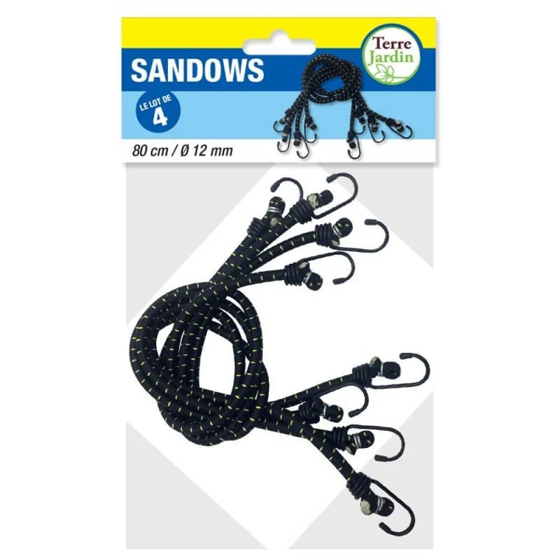 Chaque sandow est équipé de crochets gainés en plastique à chaque extrémité, pour une fixation facile et sans risque d’endommager les supports. Que ce soit dans le coffre de votre voiture, à la maison ou sur vos chantiers, ces sandows sont aussi pratiques qu’indispensables.