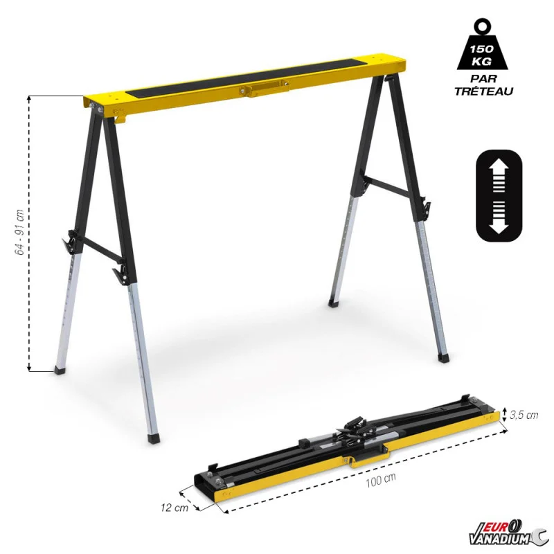 Dimensions tréteau plié : 12 x 99,7 x 3,5 cm