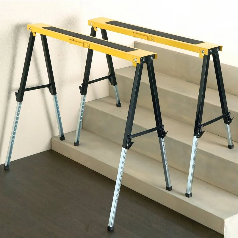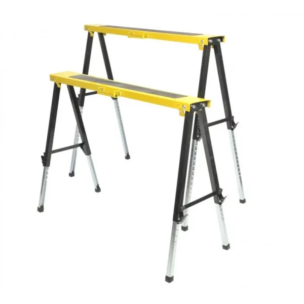 Ce lot de 2 tréteaux en métal offre une hauteur réglable grâce à leurs pieds télescopiques, s’adaptant facilement aux terrains irréguliers ou escaliers. Robustes, ils supportent jusqu’à 150 kg chacun. Idéal pour les travaux du quotidien ou à emmener sur vos chantiers.