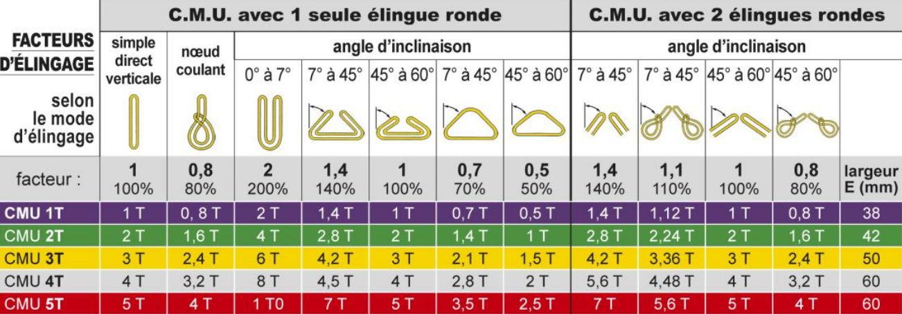Sur chaque élingue, une bague de marquage indique la charge d’utilisation. L’utilisation avec un angle supérieur à 60° est interdit.