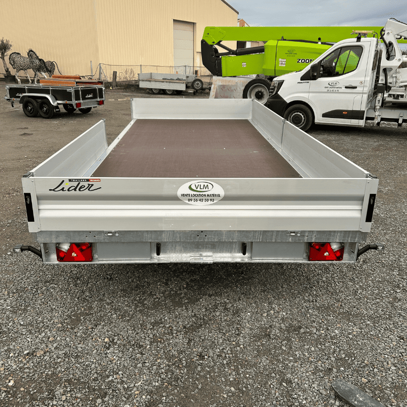 VLM, spécialiste dans la vente et location de matériel vous propose à la vente une Remorque Plateau Lider 5 m avec Ridelles – PTAC 3500 kg